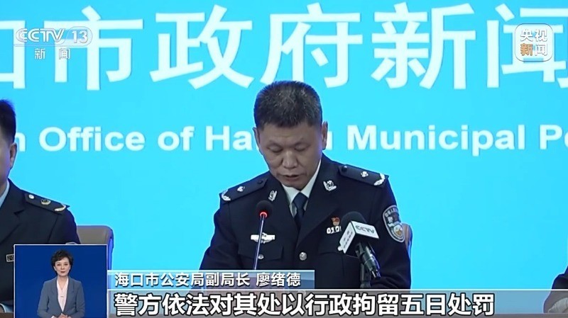 海口市公安局副局长 廖绪德:经查,苏某某为了给其经营的汽车托运业务吸引更多的业务,拍摄发布视频,故意歪曲夸大事实,恶意使用与事实不符的标题,制造过海焦虑,造成不良社会影响,警方依法对其处以行政拘留五日处罚。